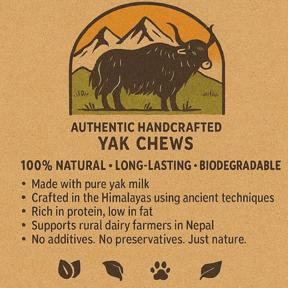 Himalayan Yak Chews are handcrafted from 100% yak milk, ensuring a long-lasting and nutritious snack for your dog. No preservatives, no additives, just nature at its finest. Perfect for all dog breeds, these chews support strong teeth, healthy gums, and a happy, satisfied pet. Plus, every chew helps support rural farmers in Nepal.